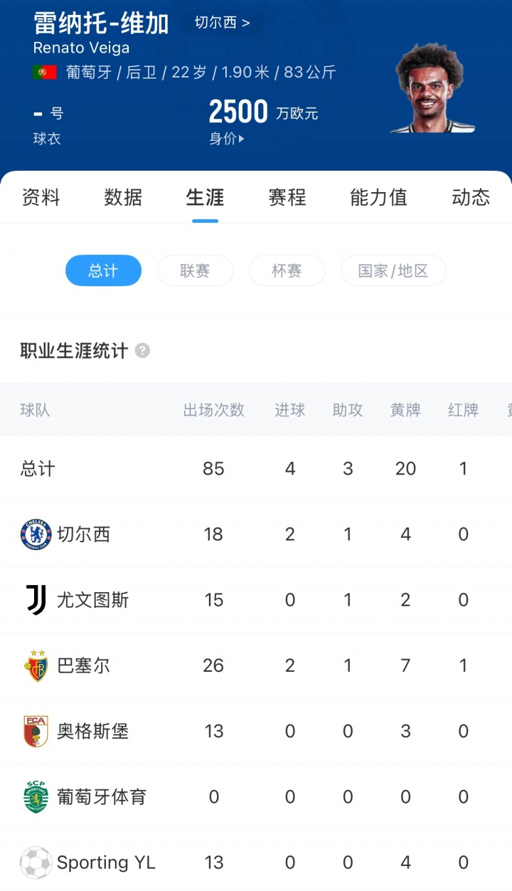 维加2024年7月以1400万欧加盟切尔西,签约至2031年6月。今年冬窗,维加租借至尤文,上赛季各项赛事他共出战33场比赛,贡献2球2助攻,德转身价2500万欧。